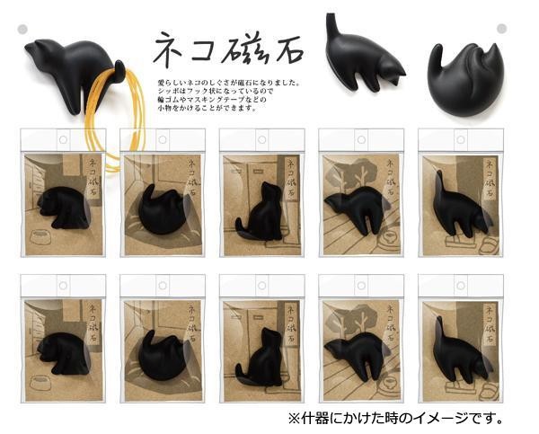 | 愛らしいネコのしぐさを模した磁石セットです。しっぽはフック状になっているので、輪ゴムやマスキングテープなどの小物をかけることができます。 |