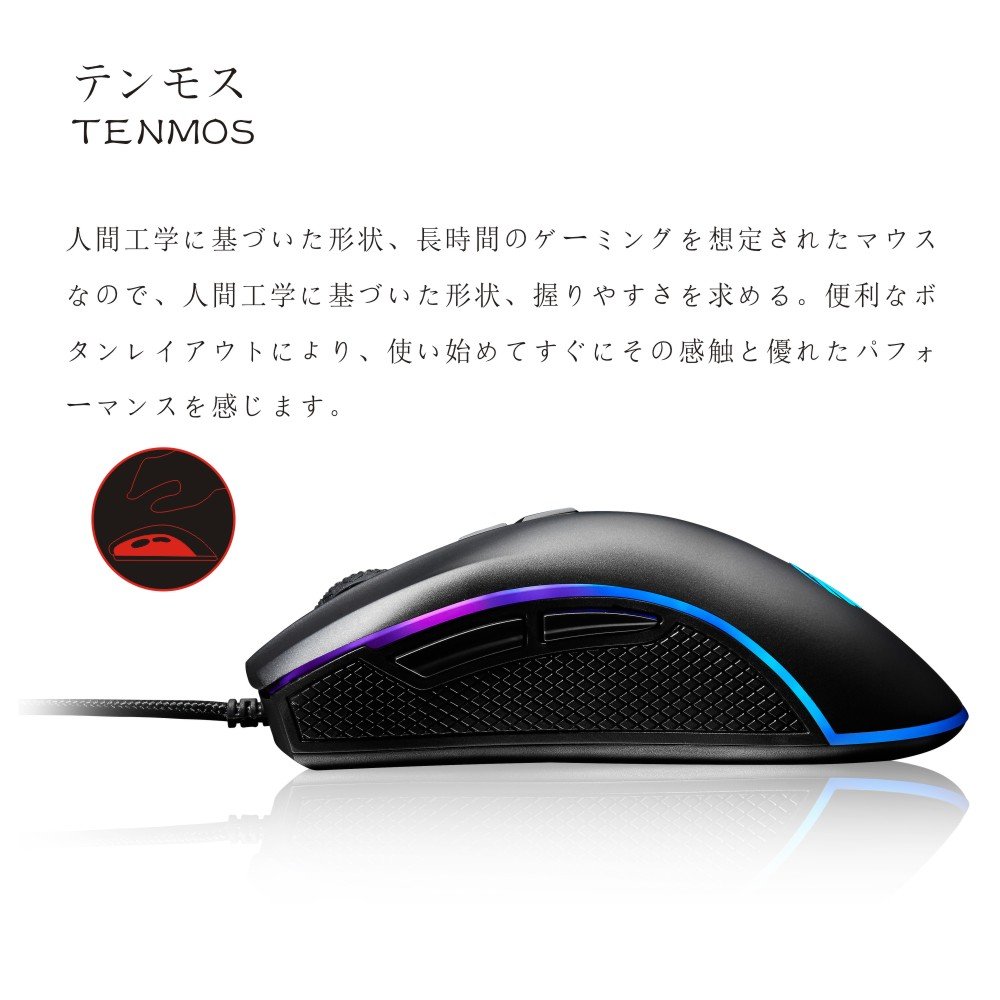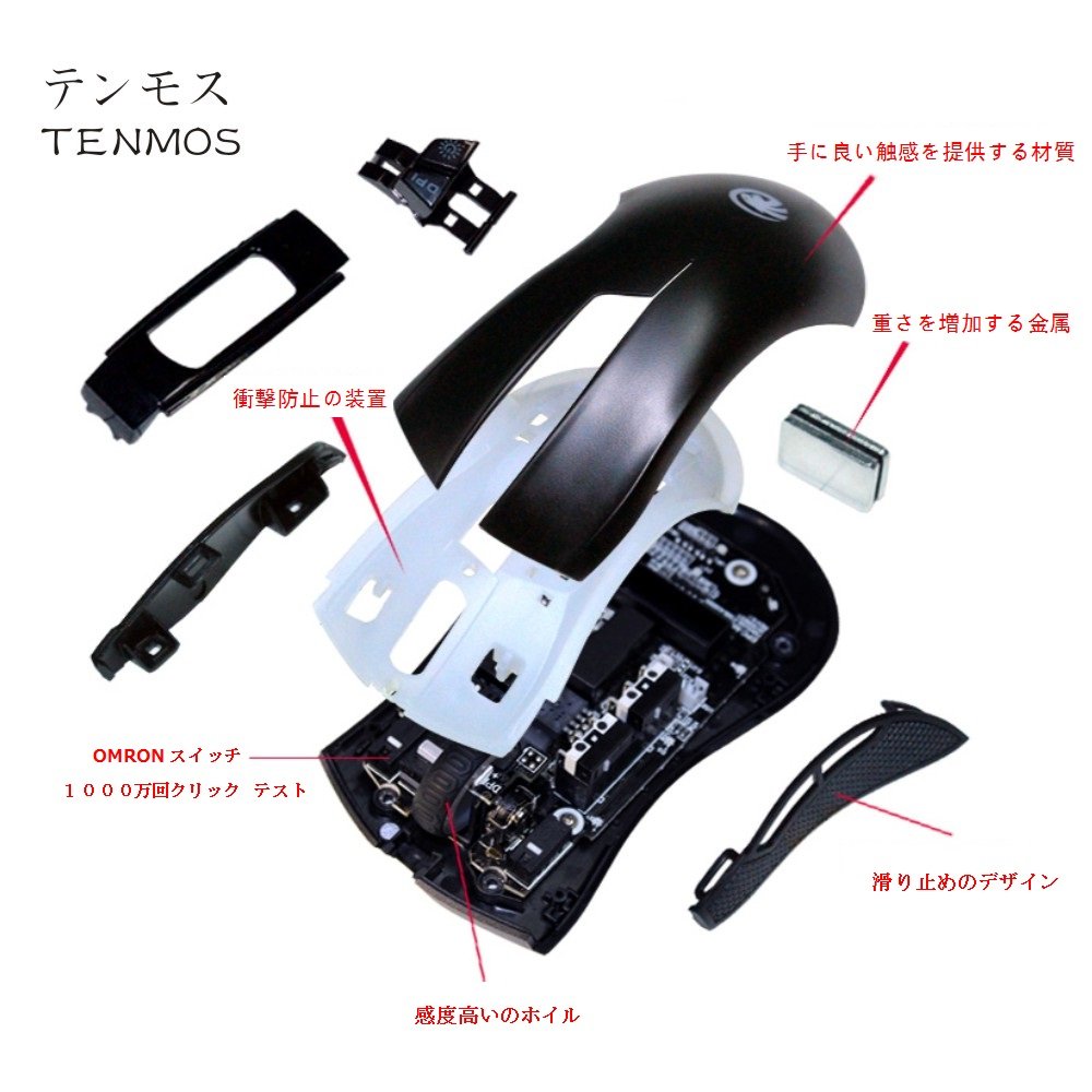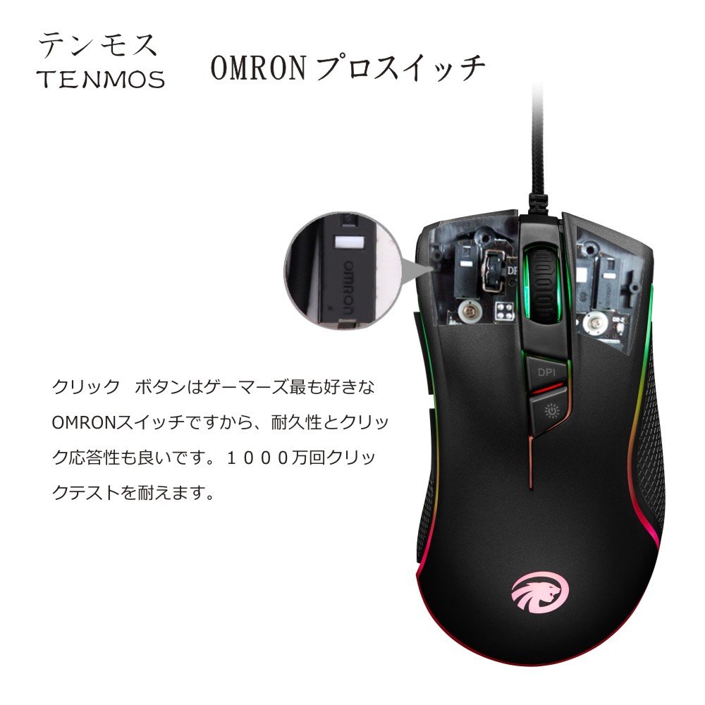 Equipped with speed change button at the top of the main unit, it is possible to switch the accuracy and speed of the mouse to 500-1000-1750-3000-4000 DPI in 5 steps according to the application.