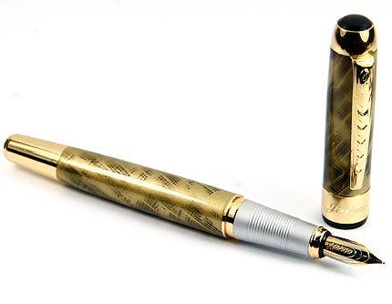 -. Title : Band New Royal Goldren Color JinHao 250 Trim Fountain Pen Medium Point With Golden Ring Stylish Push in Style Ink Converter Christmas Gift