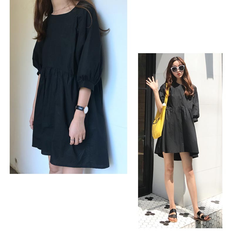 パフスリープとギャザースカートでシンプルなワンピながらドール風の可愛さです☆