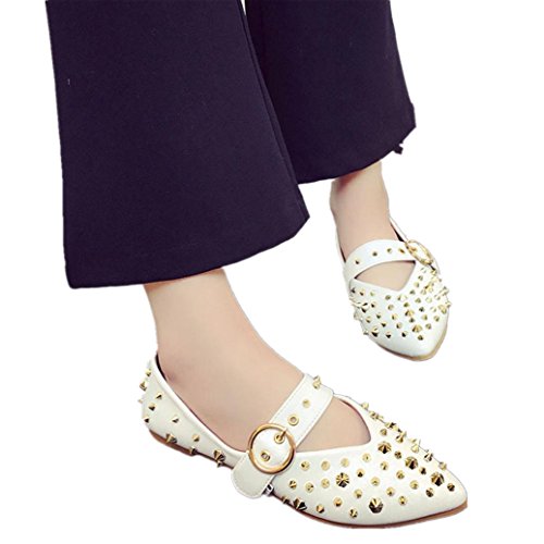 -. Title : Elevin(TM)Women Summer Fashion Pointed Toe Rivets Leather Flat Flattie Single Ankle Jelly Shoes
