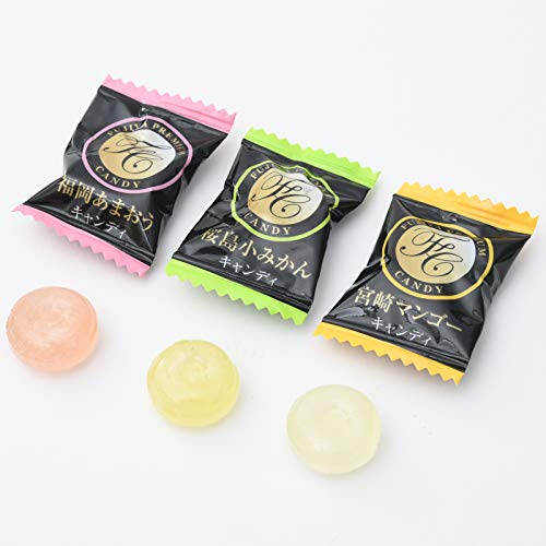 原材料:「あまおうキャンディ」砂糖、水飴、あまおうペースト、酸味料、香料「マンゴーキャンディ」砂糖、水飴、マンゴーピュレ、酸味料、香料「桜島小みかんキャンディ」砂糖、水飴、桜島小みかん、酸味料、香料、トレハロース