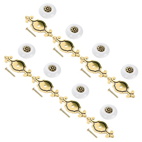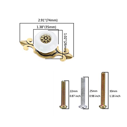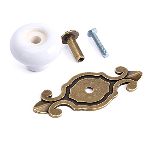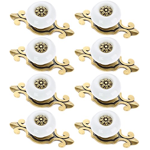 Corasays 2 IN 1 Vintage Ceramic Drawer Cabinet Knobs and Pulls for DIY Home Furniture Cabinet Dresser Cupboard Bin Door Handles, Pack of 8 (White-Bronze)