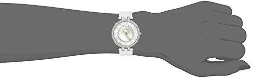 Metal case back. Ceramic bracelet features a jewelry clasp closure. Crystal-embellished bezel. Three-hand analog display with quartz movement. Mother of pearl dial features silver-tone hour markers and hands with and Anne Klein detailing. Water resistant. Imported.Feature
