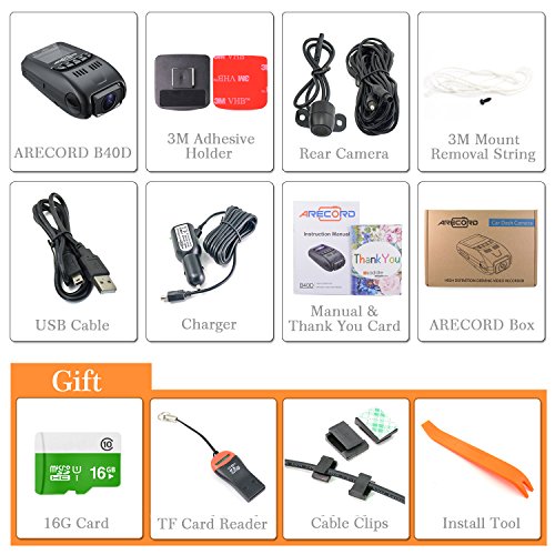 -. Binding : Electronics -. Brand : ARECORD -. Color : Black -. EAN : 0701599831920 -. Feature : Novatek NT96655 Chipset + Aptina AR0330 Lens - Full HD 1080P@30FPS + Lower Power Demand + Higher Video Compression. / Capacitor Based, No Internal Battery!!! - Do not have to worry about your camera overheating, Making it an ideal choice for drivers in HOT climates. / Super Wide 170 Degree Angle + 6G Lens + Night Vision + Motion Detect + WDR for Low Light/Night Recording + GPS Logger(Optional) - EVERYTHING YOU NEED IS HERE! / Dual Lens Vehicle Dashboard Black Box - With a WATERPROOF 120 Degree rear camera you take care of your front and back at the same time. / 100% MONEY BACK GUARANTEE -- Just Feel Free To Click the "Add to Cart" Button Order ARECORD B40D RIGHT NOW! -. IsAutographed : 0 -. IsMemorabilia : 0 -. Label : ARECORD -. Manufacturer : ARECORD -. ManufacturerPartsWarrantyDescription : Parts -. Model : LYSB01B6MULCC-ELECTRNCS -. MPN : AR-B40D -. PackageQuantity : 1 -. PartNumber : AR-B40D -. ProductGroup : CE -. ProductTypeName : PHONE_ACCESSORY -. Publisher : ARECORD -. Studio : ARECORD -. Title : ARECORD B40D Dual Lens Car Dash Camera Super Capacitor Video Recorder 1080P@30FPS | Novatek NT96655 + Aptina AR0330 + Rear View Camera + No Internal Battery[Upgraded from B40 B40-C A118C B60] -. UPC : 701599831920