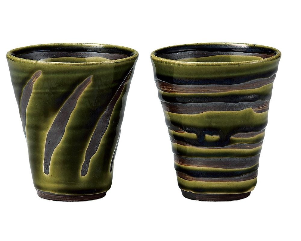 陶磁器有数の産地が生み出す、伝統と革新の器です。 製造国:日本 素材・材質:陶器(瀬戸焼) 商品サイズ:約φ9.9×H10.8cm 仕様:食器洗浄機の使用:不可電子レンジの使用:可容量:350ml セット内容:カップ×2 ※サプライヤー直送品 ご注文後2~3営業日後の出荷となります【商品名】瀬戸焼 織部渦 ペアカップ 149502