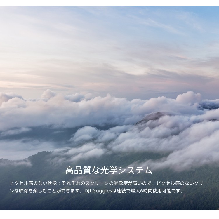 | 商品説明 | ■DJI Gogglesは、DJI 製品によるFPV 飛行の映像をシームレスに 伝送するために設計された、快適なゴーグルです。 超高品質大型ペアスクリーン、長距離で低遅延なワイヤレス伝送と、 映像の明るさやシャープネスの調整を含む写真や動画撮影の ダイレクトコントロールを組み合わせたゴーグルです。 ActiveTrack (アクティブトラック)モード、 TapFly (タップフライ)モード、地形フォローモード、 トライポットモードといったインテリジェント・フライトモードで、 まったく新しい次元の飛行体験を実現します。 |