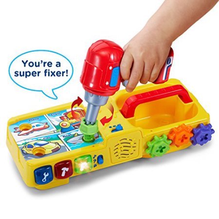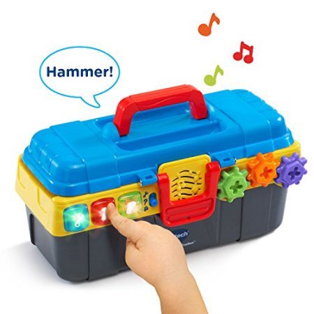 -. Feature : For kids age 1 to 4 years. / VTech Drill and Learn Toolbox includes electronic fix-it tray, working toy drill, hammer, wrench, nails and screws. Open this toddler-friendly toolbox and get ready for role-play fun! / VTech Drill and Learn Toolbox: Pressing the light-up buttons on the tray will trigger cheerful songs and introduce your little one to a variety of tools, how they're used and the sounds they make. Insert the double-sided instruction cards and learn about colors and numbers while pretending to make repairs. / My First Handy Children's Toy Tool Belt Set comes with hard hat, pliers, wrench, saw, hammer, socket, bolt and nut. / My First Handy Children's Toy Tool Belt Set keeps all tools safe and secure.