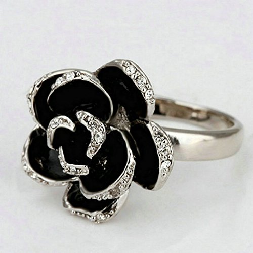 - Title : Fancy Fashion Jewelry Shining Rhinestone Black Rose Flower Ring Jewelry Sets Golden Plating Silver Color