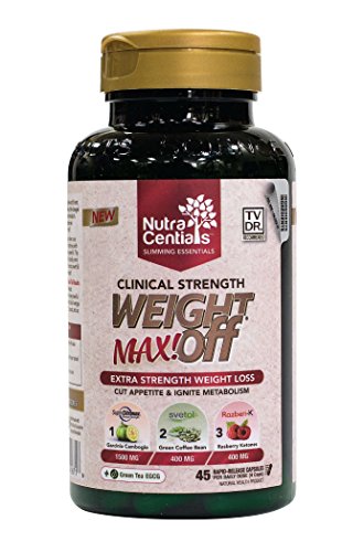 -. Binding : Health and Beauty -. Brand : NutraCentials -. EAN : 0699856416716 -. Feature : WORLDS BEST PREMIUM WEIGHT LOSS INGREDIENTS AT PROVEN DOSAGES - The WeightOFF® MAX! formulation was developed with Synergy in mind and works on several mechanisms in the body to optimize fat loss! / EXTRA STRENGTH WEIGHT LOSS PROVEN TO CUT APPETITE AND IGNITE METABOLISM - Lose the excess weight for good. WeightOFF Max will help you jump start your weight loss goals and make it easier to maintain your target weight. / NATURALLY INCREASE FAT RELEASE AND BURNING while also blocking fat storage. Your body will be P.R.Imed to melt away excess pounds and convert fat to lean, beautiful toned skin. / DECREASE EMOTIONAL EATING and your natural desire to crave sweets making it MUCH easier to stick to healthy food choices and portions. / INCREASES ENERGY AND FOCUS so you can stay motivated and on track with your health and wellness goals -. Label : NuvoCare -. Manufacturer : NuvoCare -. ProductGroup : Health and Beauty -. ProductTypeName : HEALTH_PERSONAL_CARE -. Publisher : NuvoCare -. Studio : NuvoCare -. Title : NutraCentials WeightOFF MAX! - extra strength weight loss, cut appetite and ignite metabolism, 45 veggie caps -. UPC : 699856416716