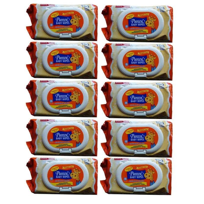 Pureen Baby Wipes Fragrance Free (Orange) 10pack x100 sheets