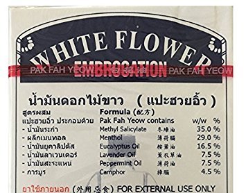 Studio : Hoe Hin Pak Fah Yeow Mfy. Ltd., Hong Kong Publisher : Hoe Hin Pak Fah Yeow Mfy. Ltd., Hong Kong Binding : Health and Beauty Product Description White Flower Embrocation 20 ml.(0.67 Oz.) Thailand Edition.