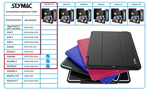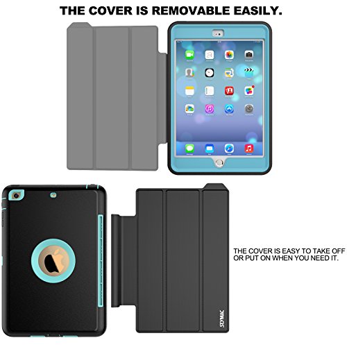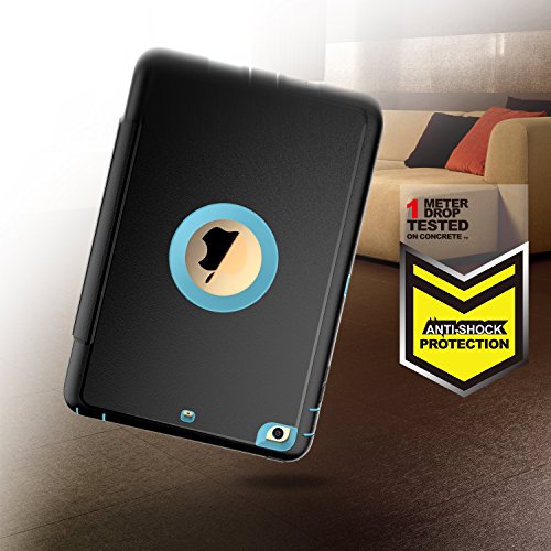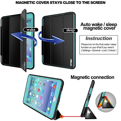 iPad Case, iPad Mini 1 2 3 Case, SEYMAC Three Layer Drop Protection Rugged Protective Heavy Duty iPad Case with Magnetic Smart Auto Wake / Sleep Cover for Apple iPad Mini 1/2/3 (Black/Light Blue)
