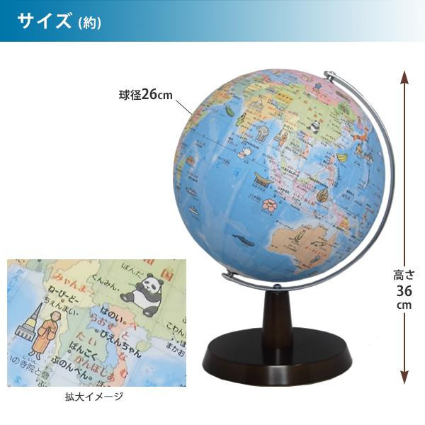 国や地域別に色分けされ、各地域にゆかりのある楽しいイラストが約100点描かれた地球儀です。ご家族やお友達と一緒に楽しみながら学べます。お部屋のインテリアとしてもお薦めです。 |