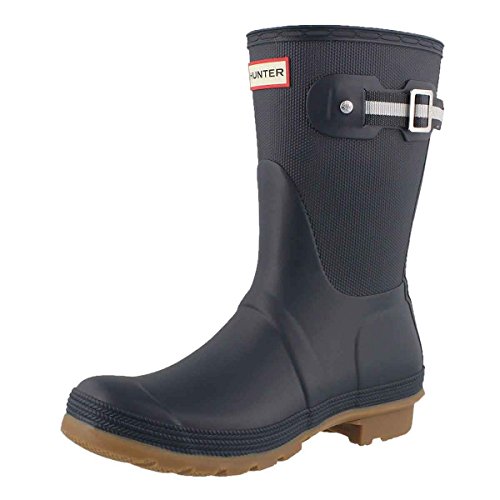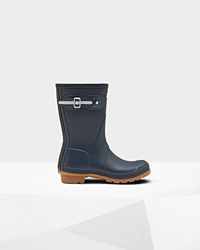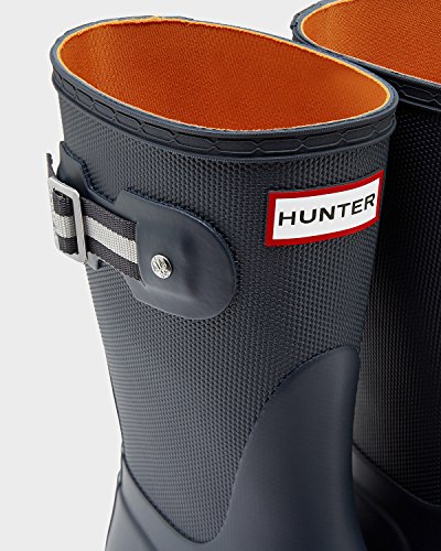 Product Description Textured finish and contrast buckle strap add to the sporty look of the ORIGINAL SHORT SISSINGHURST navy/black rain boot from HUNTER. 0