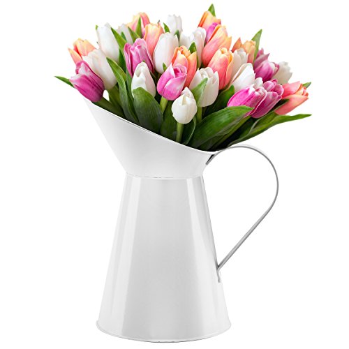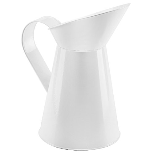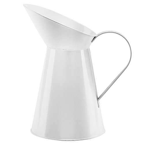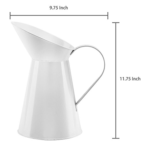 10 Inch French Country Inspired Decorative White Metal Pitcher Flower Vase