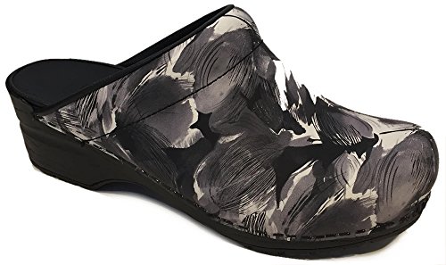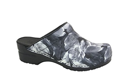 Product DescriptionSanita 'Isadora' Monochrome Print Clogs (Art: 457628). Ladies open flexible clogs with monochrome printed leather uppers. Black PU footbeds. Leather insoles. From Danish makers Sanita.0