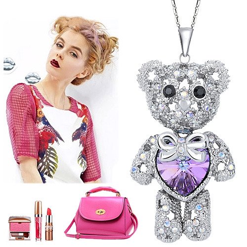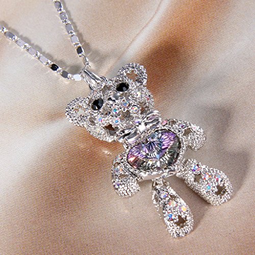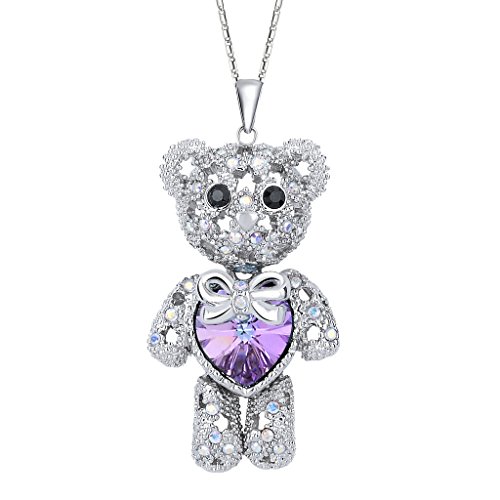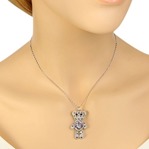 -. Title : EleQueen Women's Silver-tone Love Heart Bear Pendant Necklace Adorned with Swarovski Crystals