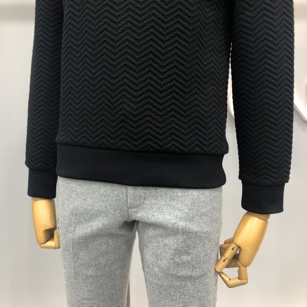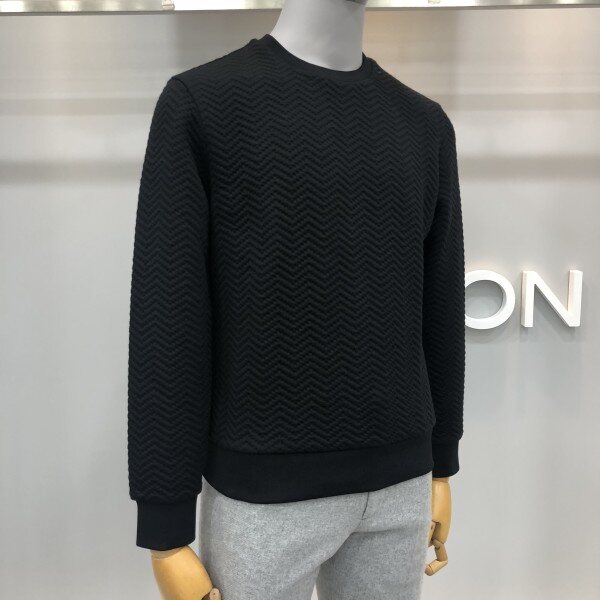본 가을 겨울 블랙 엠보 조직감 라운드 티셔츠엠보 조직감이 가을 겨울철 보온성을 높혀주는 효과가 있으며 신축성이 매우좋고 기본 데일리 아이템으로활용하기 굉장히 좋습니다.