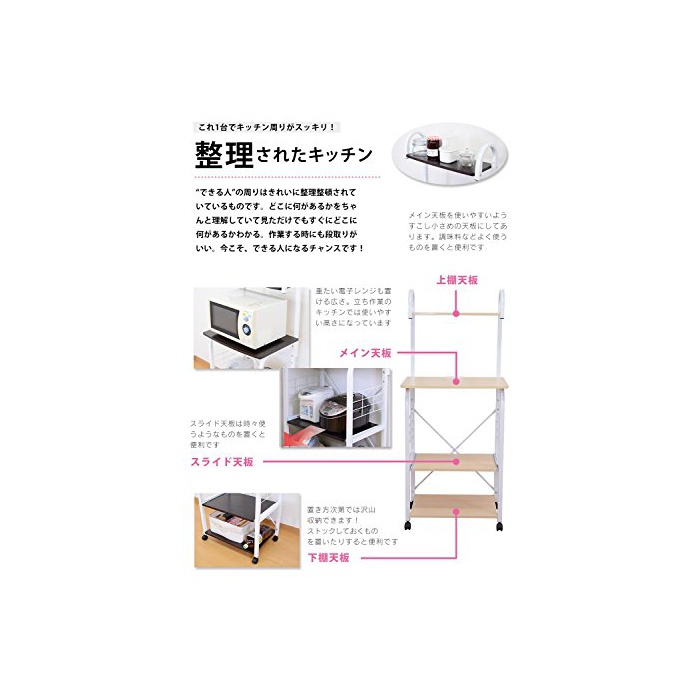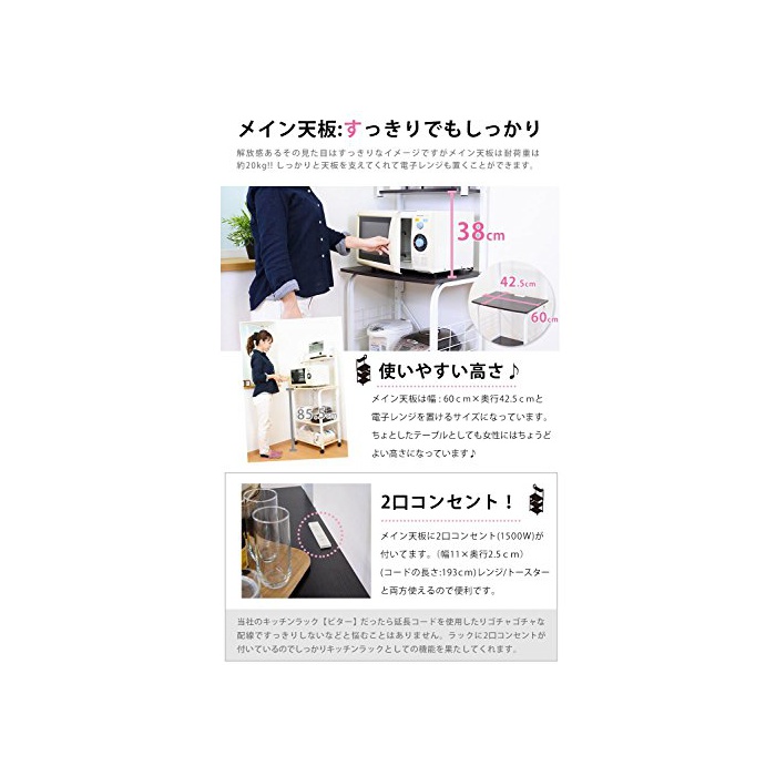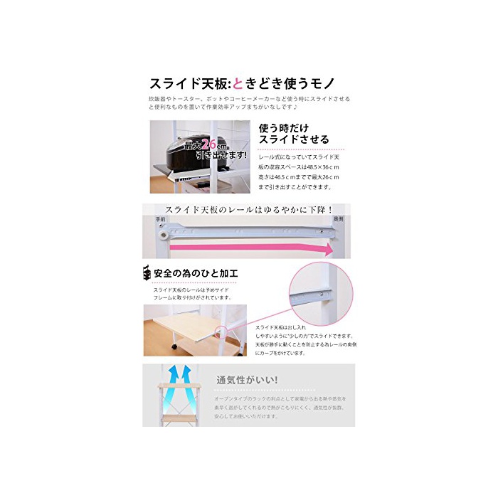 【수납력 발군】4 단선반의 키친 lak입니다.밥솥,포트를 두는 것으로(에) 편리한 슬라이드 테이블2 구콘센트 부착입니다.(코드의 길이는 약2m입니다)