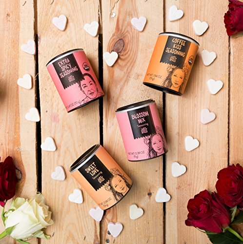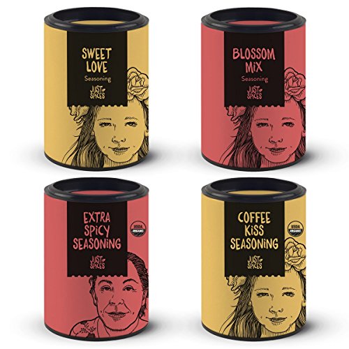 -. Feature : 4 GOURMET SPICE BLENDS: Extra Spicy Seasoning, Coffee Kiss Seasoning, Sweet Love Seasoning, Blossom Mix Seasoning / 100% NATURAL: Our seasonings are free from fillers, enhancers or any other artificial additives - We just want the best for you / 100% TASTE: Our team has worked relentlessly to preserve the wonderful aromas of our spices and created a colorful packaging to protect our seasonings from external influences like light and air. / HIGHEST QUALITY: Our carefully picked spices are sourced from all around the globe and handcrafted in Germany / PERFECT FOR JUST ANYONE: Whether you're a foodie, professional, avid hobby chef or just passionate about making someone's day with a gift - there definitely is a Just Spices Seasoning Box for every occasion