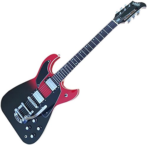Model: Wedgtail DLX Body: Solid Mahogany Colours: Fyreburst Pickups: Dual Humbuckers Switching: 3-Way Controls: 2 Volume, 2 Tone Bridge: Tone Pros Roller, BIGSBY B-50 tremolo Neck: Set Maple, 22 Frets Finger Board: Rosewood, Dot Markers Scale Length: 24 3/4'' Width at the Nut: 1 5/8'' Hardware: Grover Style Nickel/Chrome Strings: 10-46 Case: HardCase