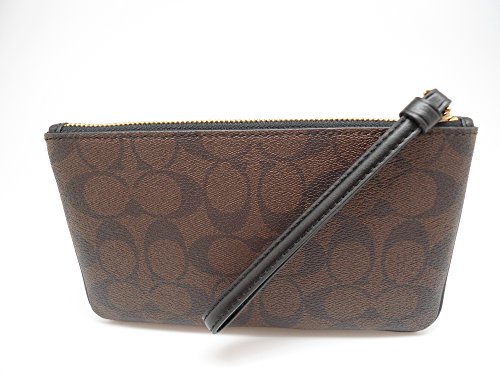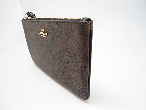 Coach Signature PVC Large Wristlet Brown Black 0080