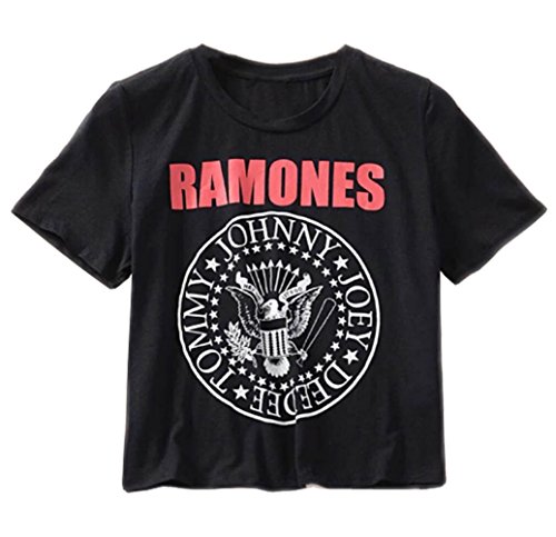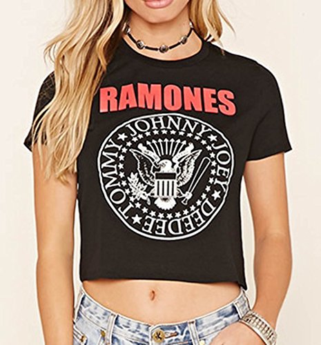 -. Binding : Apparel -. Brand : Darceil -. Department : womens -. Feature : Fabric: Polyester + Cotton / Note: Please make sure that you purchase the product from its trademark owner "Darceil". We can't guarantee the product quality or after-sales service from other sellers other than Darceil. / Good quality fabric, and making style make you stylish and comfortable when wearing. / Machine or hand wash in cold water. / In most cases we can get the item to you in about 7 to 15 days in Standard Shipping and 5 to 8 days in Expedited Shipping. -. ProductGroup : Apparel -. ProductTypeName : SHIRT -. Title : Darceil® Women's Black Short Sleeve Rock Band Ramones Print Crop Top T Shirt