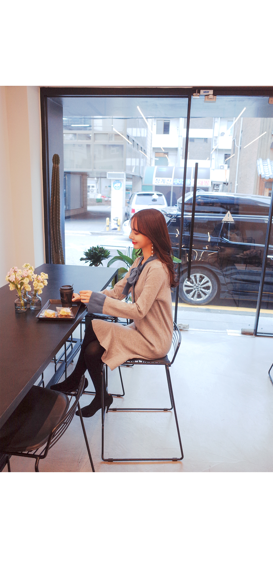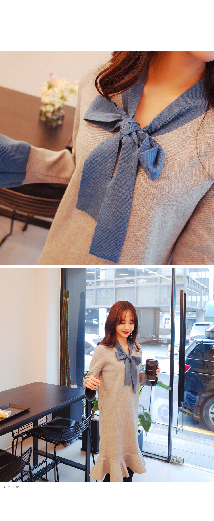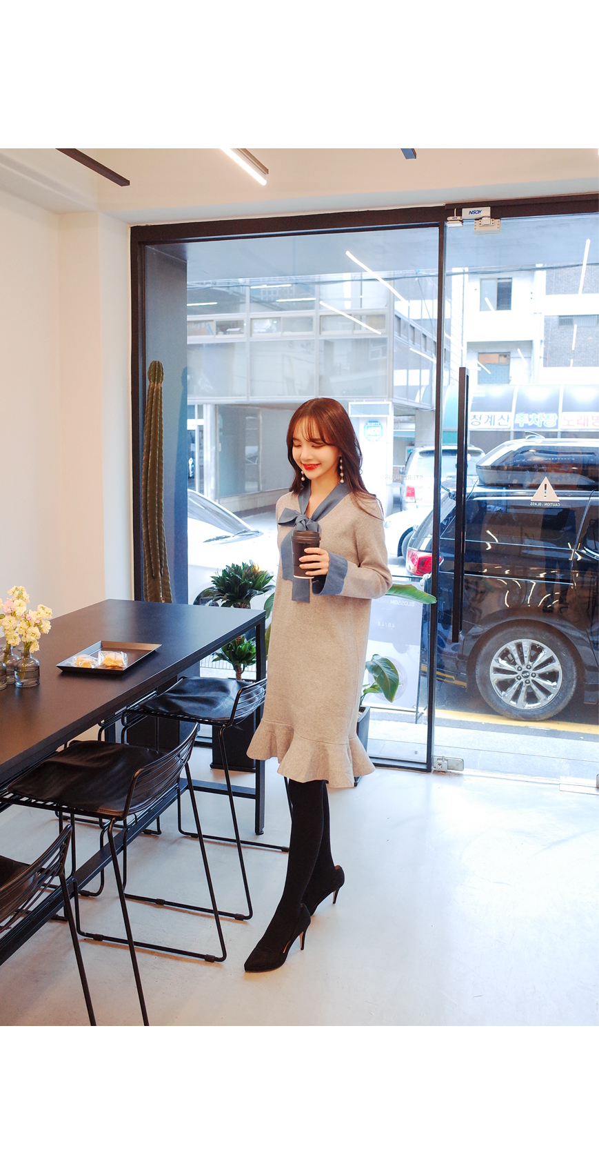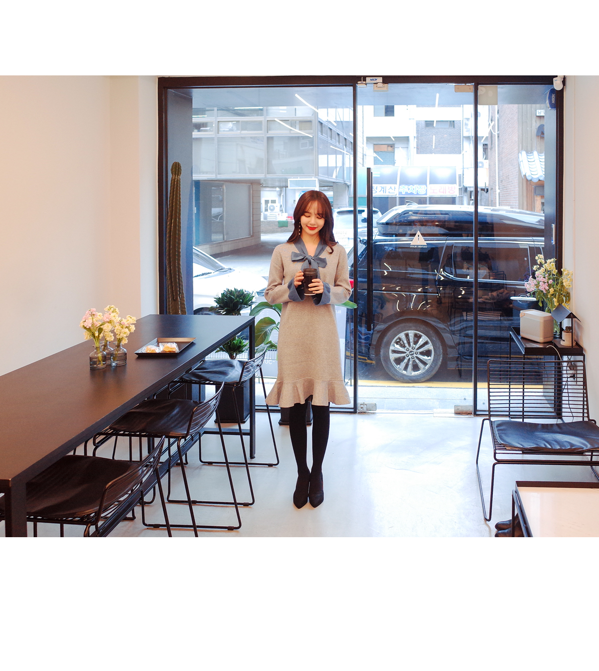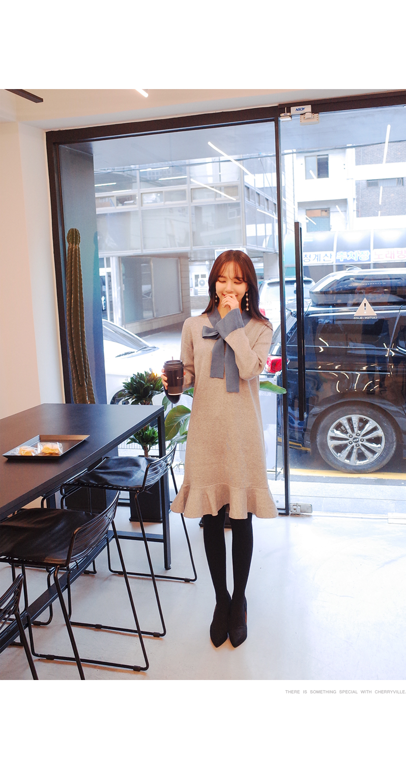 리본포인트가 심쿵유발하는 니트원피스입니다