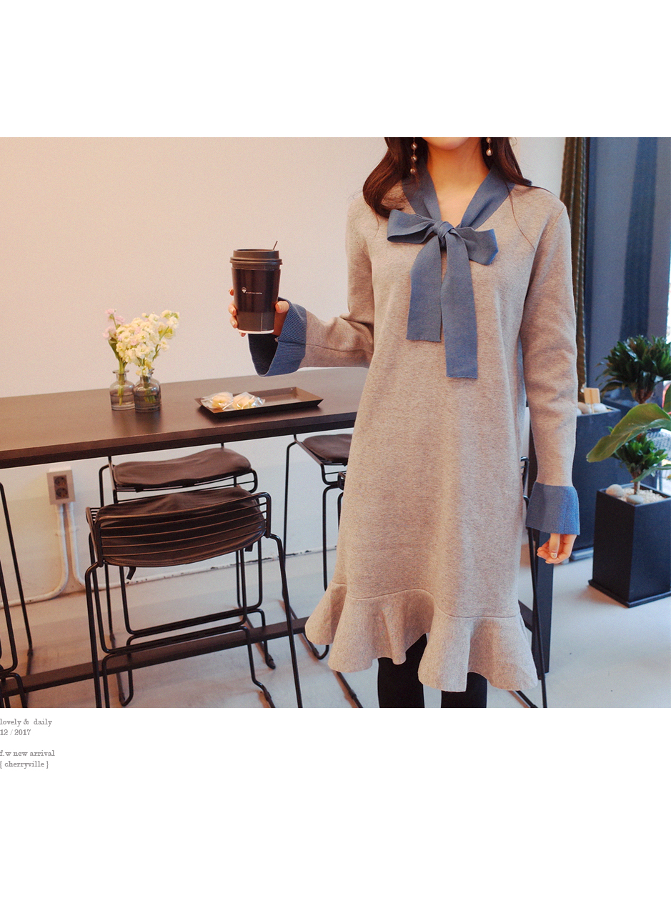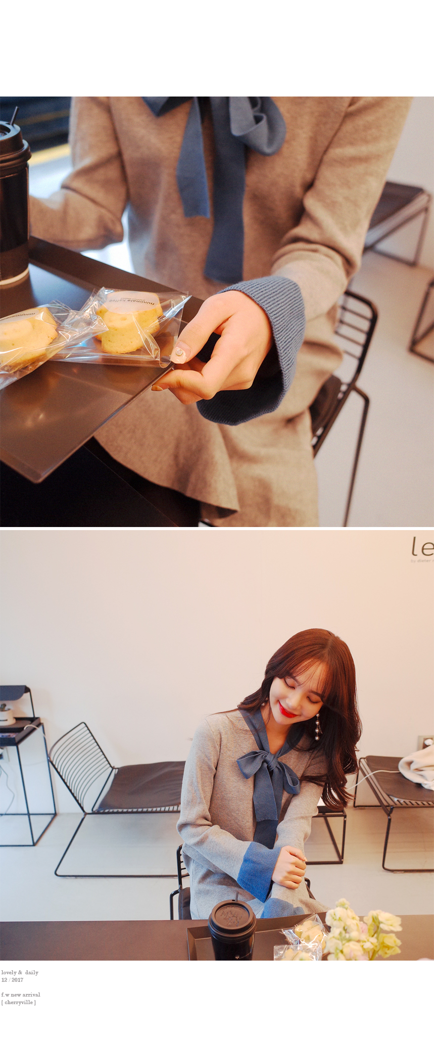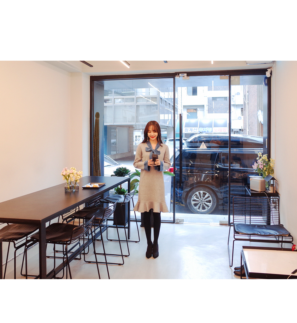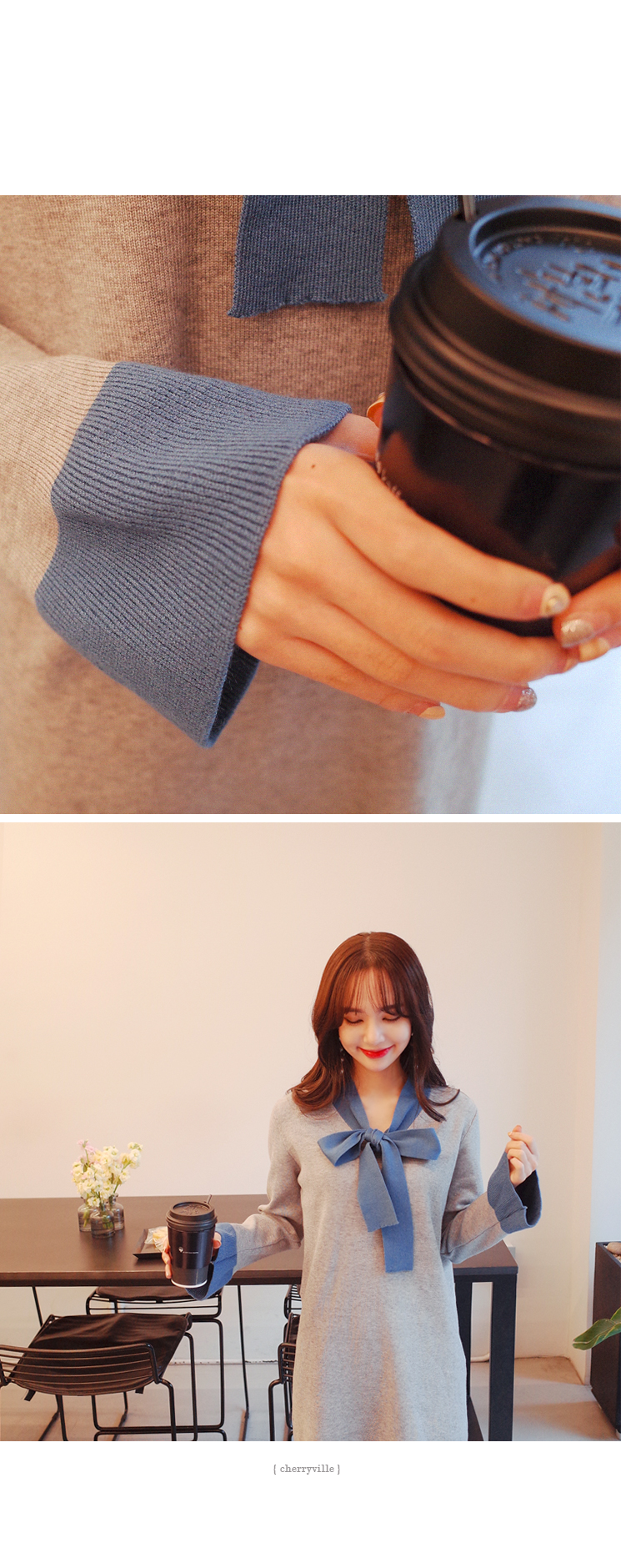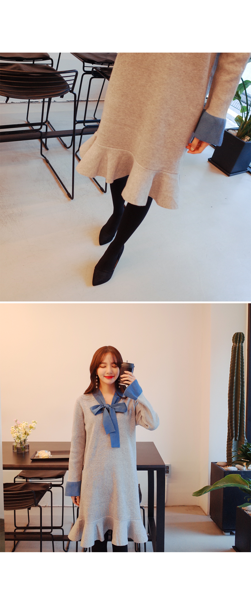 리본포인트가 심쿵유발하는 니트원피스입니다