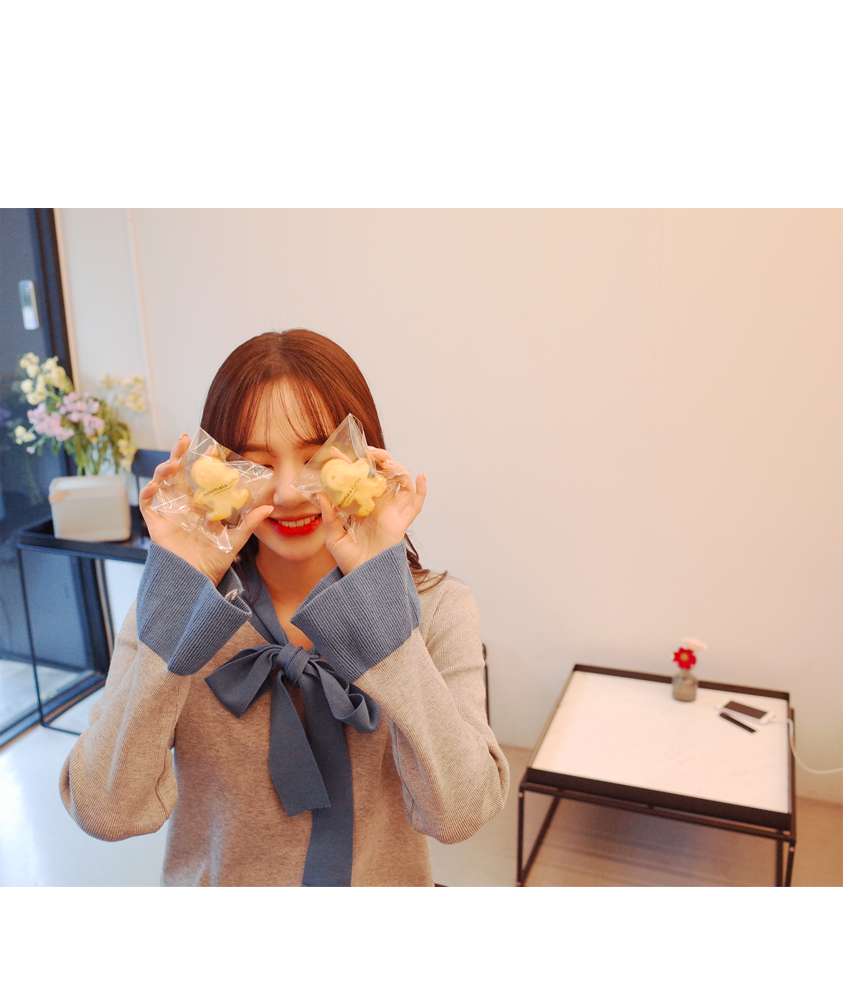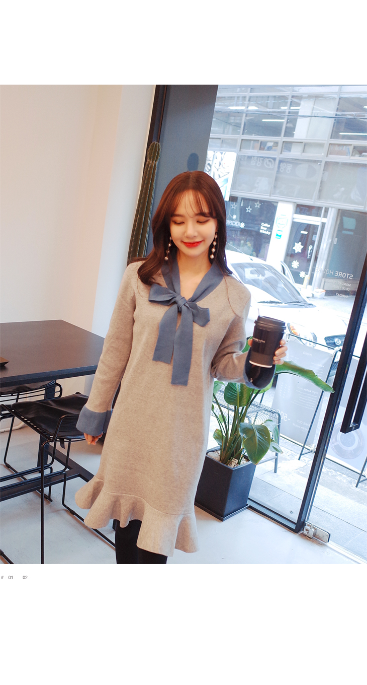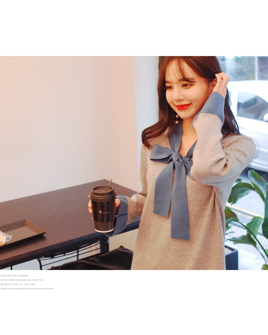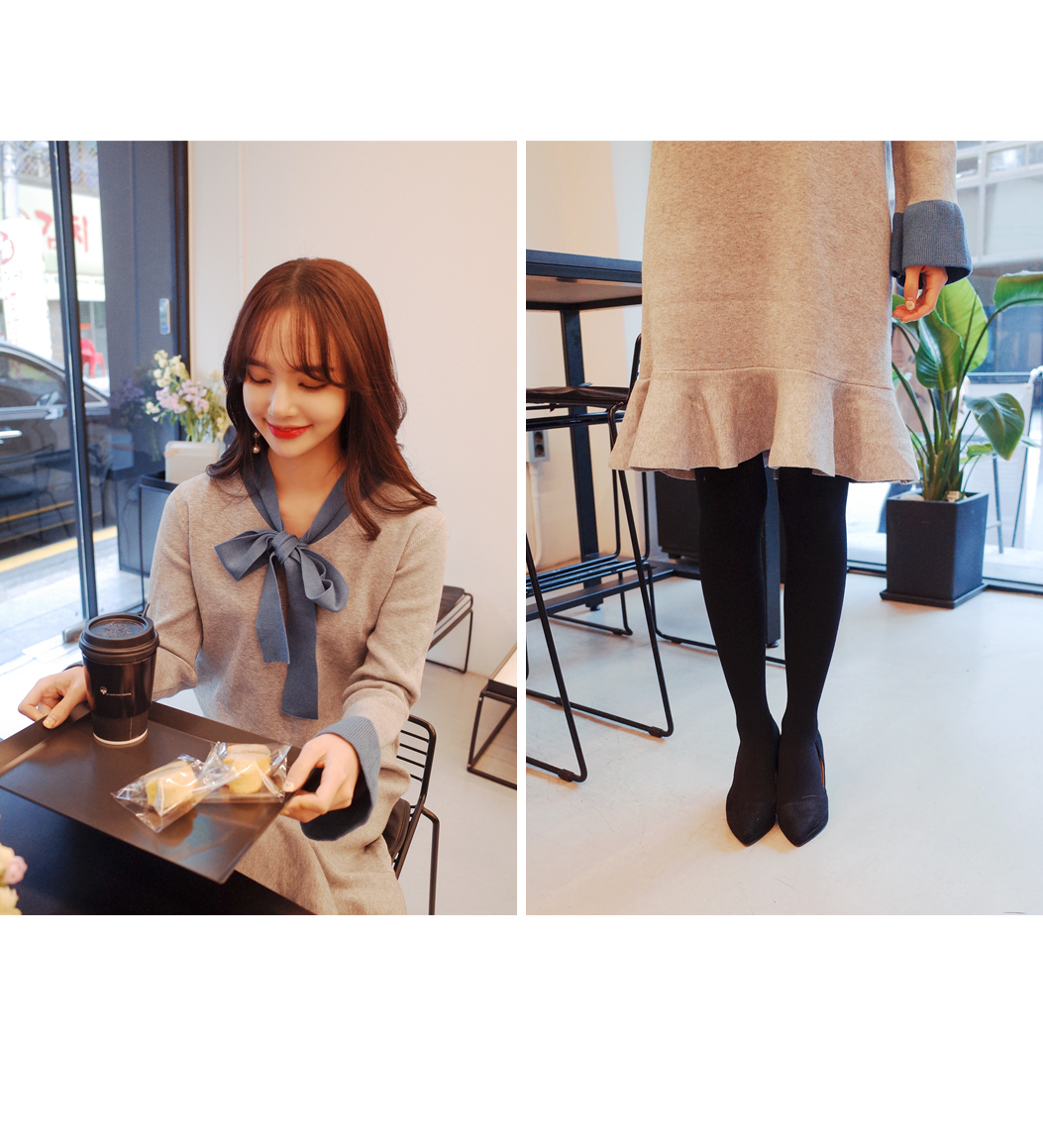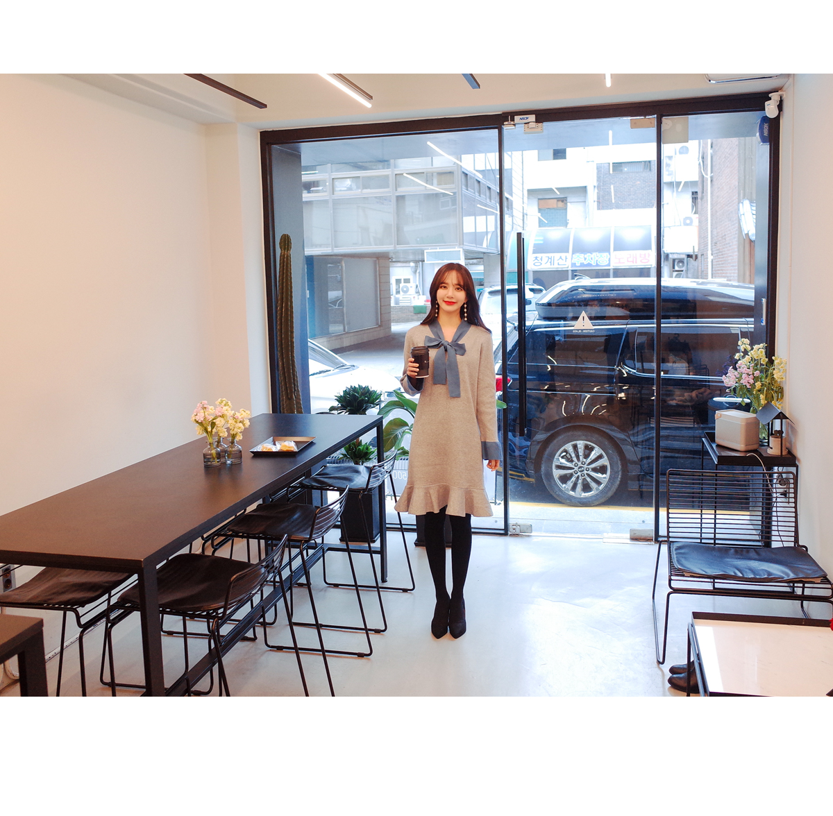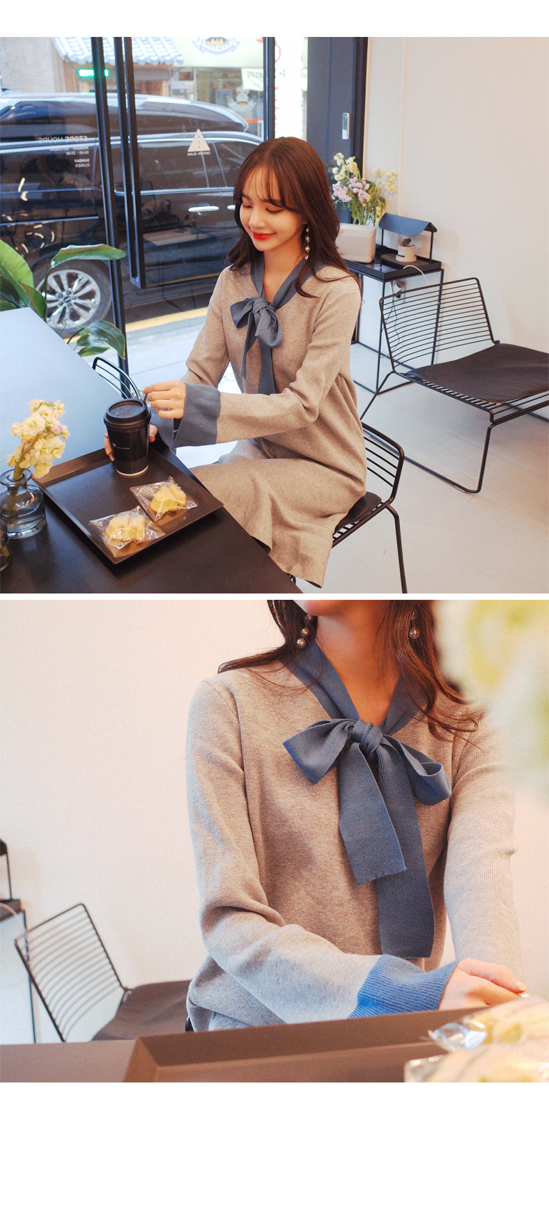 리본포인트가 심쿵유발하는 니트원피스입니다