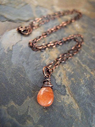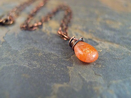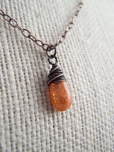 -. Title : Sunstone Necklace, Wire Wrapped Jewelry, Copper, Sundance Style Jewelry