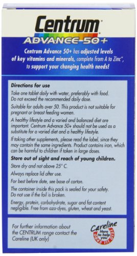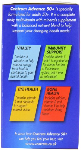 -. Feature : New UK Stock! with Best Before/Exp End: February 2017 - 02/2017. / Manufacturer: P.f.i.z.e.r Consumer Healthcare Ltd, United Kingdom. / Centrum is the world's No 1 selling multivitamin and multimineral supplement range. / Centrum Advance 50+ is specially formulated for adults 50+. / Centrum Advance 50+ has adjusted levels of key vitamins and minerals. ----- Centrum Advance 50+ is a comprehensive and balanced multivitamin/ multimineral supplement from A to Zinc. ------ Centrum Advance 50+ helps support your changing health needs.