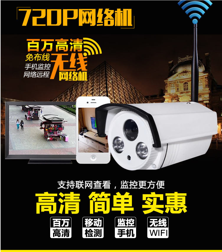 ip camera 720P 2 Array leds P2Pu0026amp;Wireless Wifi u0026nbsp;wifi Night Vision In/Outdoor camera ONVIF security Camera system