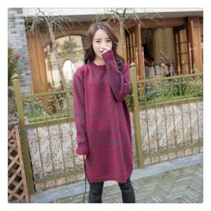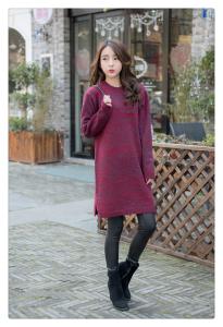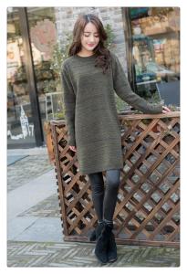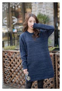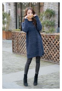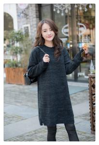 ニットワンピース 長袖 ミニ丈ワンピース ゆったり ニット セーター 無地 丸首 ラウンドネック スリット