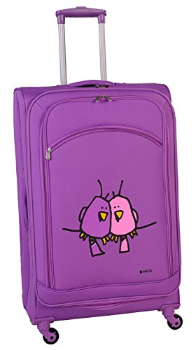 -. Feature : ED heck exclusive art / Four spinner wheels made of special rubber blend for quiet rolling / Color matching trolley handle and wheel base / Exterior and interior pockets that helps you keep well organized / Fully lined nylon interiors