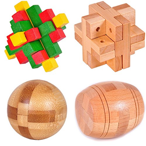 -. Title : KINGOU 4 Pack 3D Wooden Puzzle Mini Wood Puzzle Set Brain Teaser - Ball Barrel