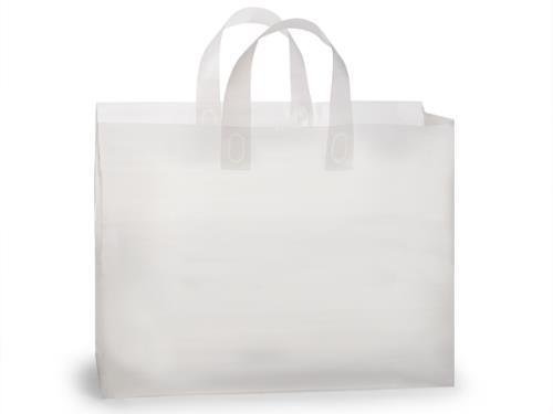 -. Title : Frosted Plastic Shopping Gift Bags Large (16x6x12)- Quantity of 50 (Clear) by JS Collections