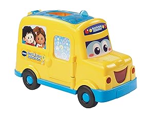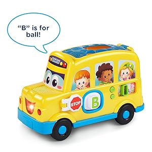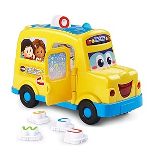 The learning on the bus goes on and on! The interactive Count and Learn Alphabet Bus by VTech will take your child on a fun learning adventure. Kids can place each of the twenty-six letter blocks and ten number blocks into the yellow school bus and hear the bus respond with letters, phonics, numbers and colors. You can even personalize this friendly alphabet bus to recognize your child's age and the first letter of their name every time they plug in that number or letter. Fun games keep little learners entertained as they're introduced to counting, everyday words and more. They'll also enjoy a musical journey with more than 20 melodies, and the motion sensor triggers fun sounds when the bus is pushed along. Bus acts as a fun vehicle and storage for the blocks. The bus also introduces traffic safety rules with extending stop sign. Includes 40 plus sounds and melodies. Features durable design, automatic shut-off and volume control. Requires 2 AA batteries (batteries included for demo purposes only; new batteries recommended for regular use). Intended for ages 2 to 5 years.