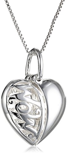 -. Title : Sterling Silver Heart "Mom" That Opens To Show a Mother Child Silhouette Pendant Necklace, 18"