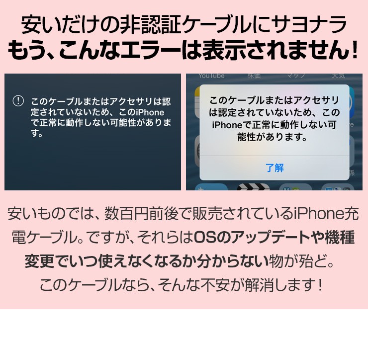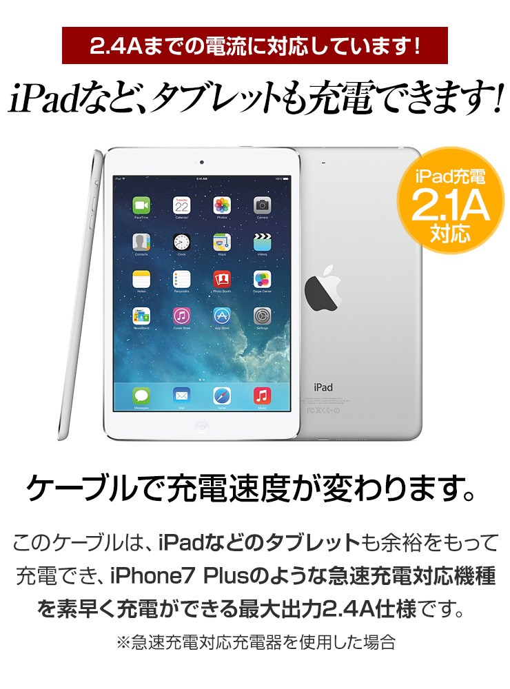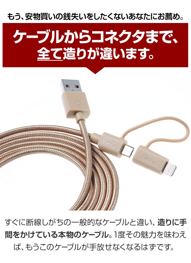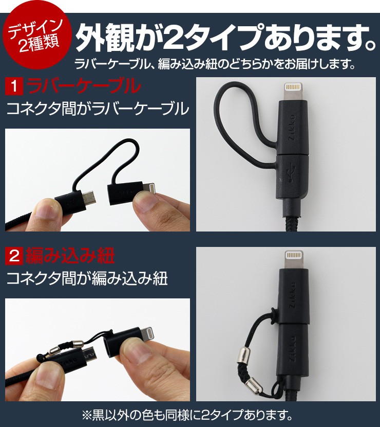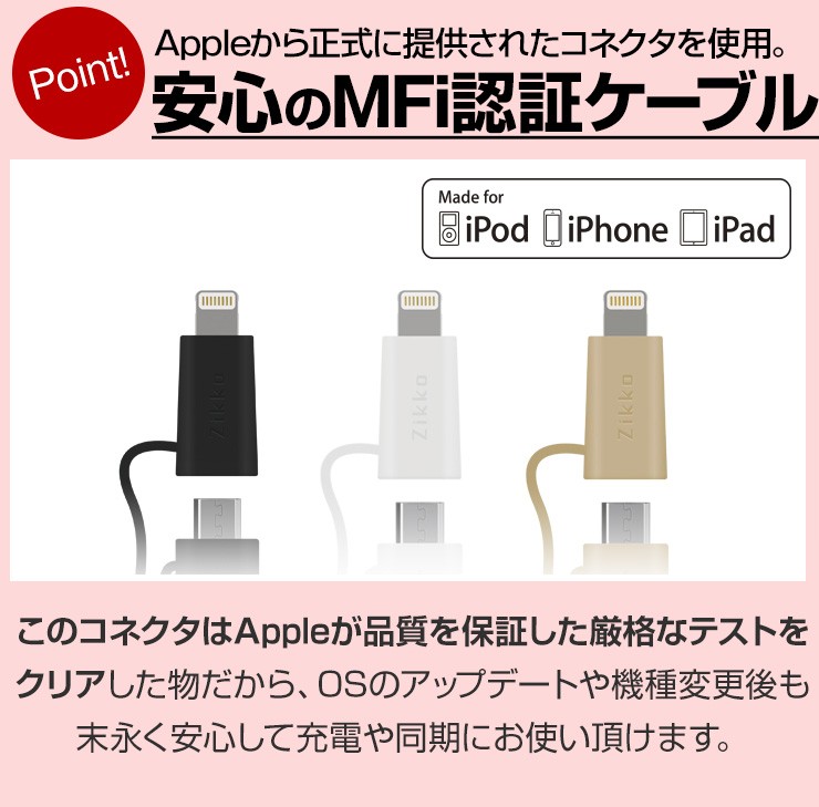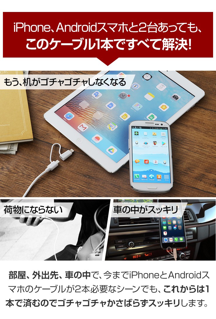 長さ 1.5m重さ 36gコネクタ USB、iPhone用コネクタ(8-PIN)& Micro USB対応電流 5V/2.4A Max転送速度 480 Mbps保証期間 お買上げより180日※故意に強い力を加えると破損する可能性がございますので、ご利用の際はご注意ください。デジキン
