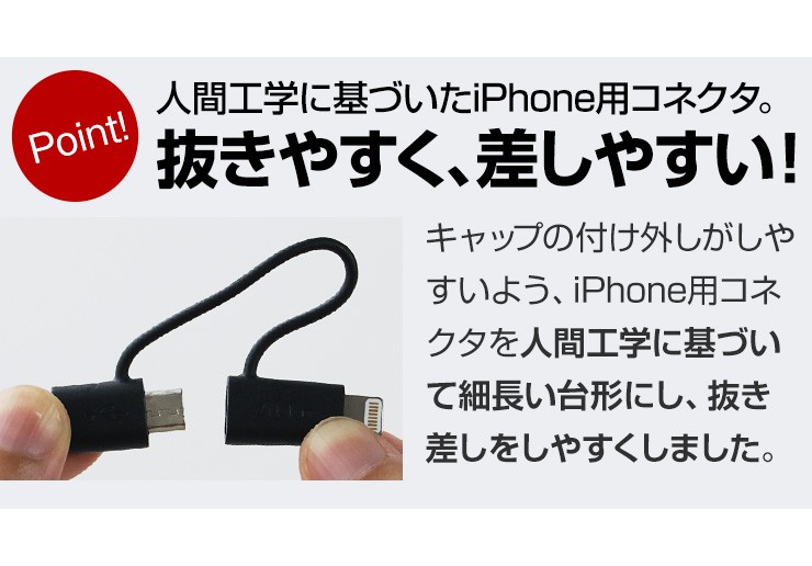 | コネクタ | USB、iPhone用コネクタ(8-PIN)& Micro USB |