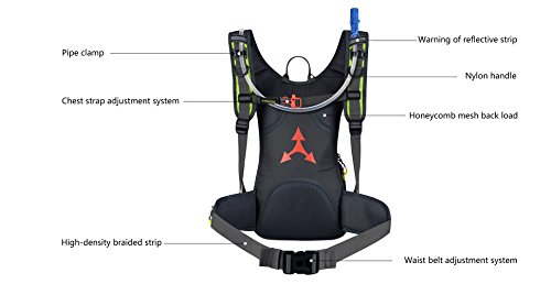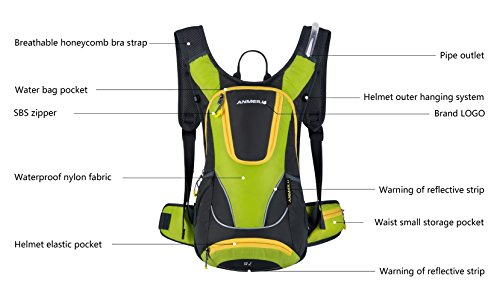 -. Feature : Water bag with air flow backpack system: Anmeilu is a new bear system created by the combination of materials based on wear-resistant fabric and innovative technology, and it can ensure the premise of the comfort, ensure the effectiveness of breathable wear-resistant, and enhance the quality of the use of experience / Night warning reflective stripe:The warning and protective articles made from reflective materials can generate strong reflective effect under the lighting condition. It can give a warning to those people or vehicles moving in the darkness. Hence, it can improve the safety during night running and cycling. / Diversification of reservoir space: a variety of pocket sizes can ensure that you can carry everything you need! Small pockets can be loaded with keys, credit cards and valuables. Large pocket can be fitted with a 13 inch laptop, SLR camera or other items, and the back designs the hidden detachable helmet elastic pocket for riding. / Introduction of alternative water bladder: Built-in 2L (68 ounces) water bag, allowing you to carry the water becoming very convenient. This high-quality water bag is approved by the FDA US Food and Drug Administration, made of TPU material, which is the best material mixed by BPA-free rubber and silicone. It has up to 3.1 inches of ultra-wide screw cap, and is easy to inject water into the water bag and add ice / Perfect outdoor equipment: shoulder strap, belt and chest strap are with waterproof tear-resistant lined material. Adjustable shoulder strap, belt and chest strap make you feel comfortable and unrestrained. Anmeilu water bag is the best companion of all kinds of activities, and there is no doubt that this is the best water bag ever made for running, hiking, going for a ride or riding a bike. It's your most valuable purchase. click now to buy it!