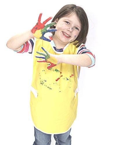 Keep kids clothes clean and mess free without hindering their creative flow with these top notch KinderSmocks. Easy over the head design, and fast Velcro closures on the sides will have your little artist creating masterpieces in no time. Made from Blue vinyl, these easy to clean smocks are the perfect solution for keeping art time spills off clothes. Generously sized to fit ages 3 to 8.Feature