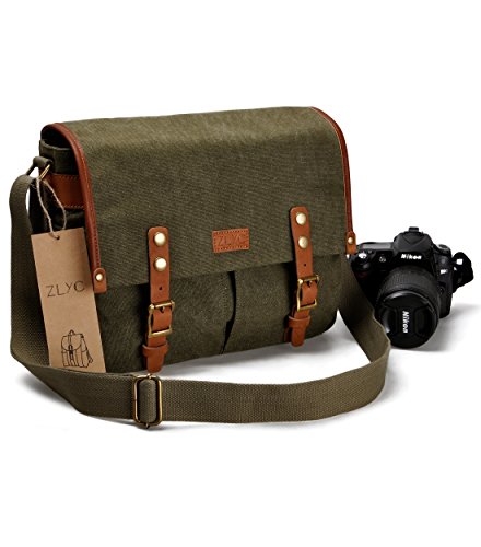 -. Title : ZLYC高密度キャンバスと本革閉めベルトの組み合わせ レトロ感  カメラバッグ ショルダーバッグ 一眼レフカメラ用スリングバッグ