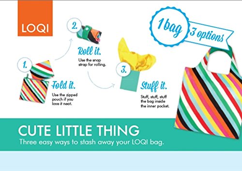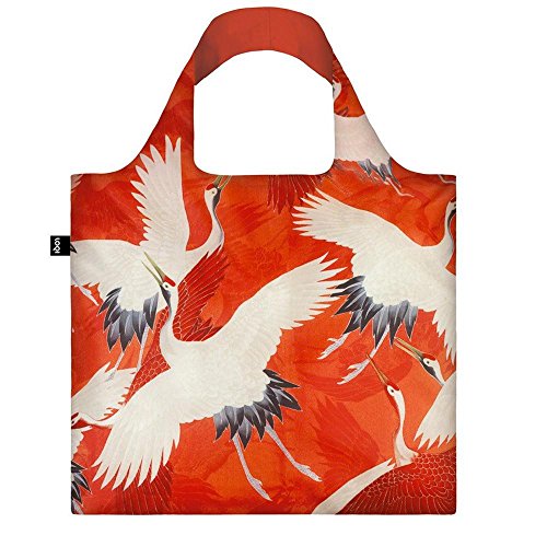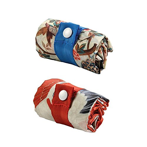 Loqi Set of 2 Museum Collection Peacocks & Cranes Reusable Shopping/Grocery Bags~Compact, Foldable into zippered Pouch, Supports up to 44 lbs. Inner Pocket for Keys & Phone, Eco-Friendly