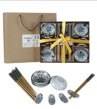 Genius CBF Ceramics Sushi Plate Set for Two in Gift Box (12pcs blue)