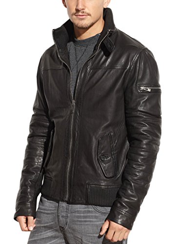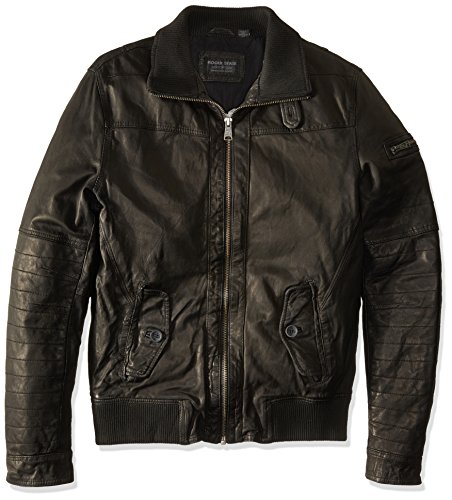 Studio : ROGUE STATE Publisher : ROGUE STATE Binding : Apparel Product Description Genuine leather jacket. Flight/bomber jacket style. Full zip front closure. Rib-knit lined standing collar with front button tab. Dual flap front pockets, 1 inside pocket, stretchy rib-knit hem, zip utility pocket on sleeve. Zippered wrist cuffs. Full cotton inside lining. Great new outerwear addition 0