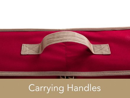 Made with our Elite Plus 600D polyester material, this item is designed to hold everything you need for gift wrapping. The inside can fit up to 15 rolls of gift wrap which can be secured with cinch straps. We include 2 vinyl pouches and 1 vinyl pocket for your scissors, tape, tissue paper, tags, and other accessories. Sturdy webbed handles are on each end and the middle, making it easy to move around, and an ID window lets you know what you've stored away.