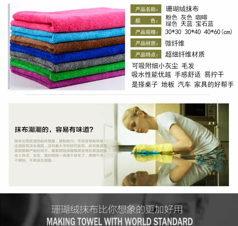 加厚珊瑚绒擦地板抹布吸水不掉毛厨房抹布不沾油洗碗布清洁巾